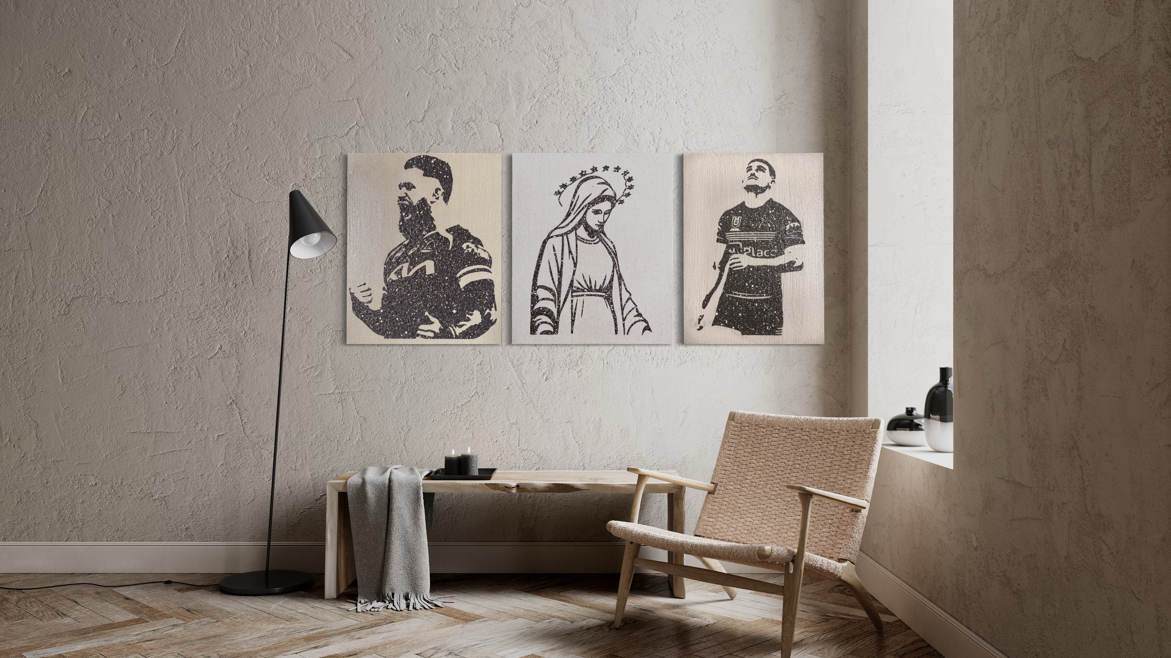 All pieces are uniquely made utilising a cement based compound and is applied onto canvas. Options are endless with an array of colours and sizes to select from.
